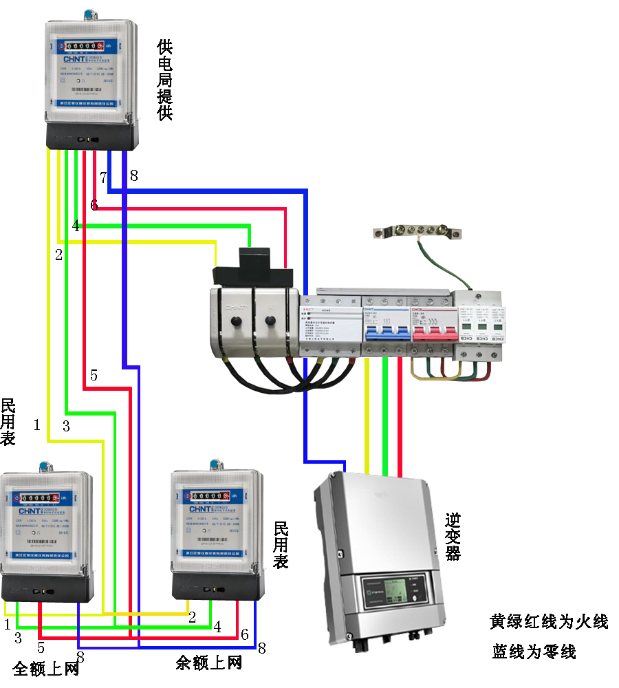 無(wú)表位太陽(yáng)能光伏并網(wǎng)箱三相全余額接線(xiàn)示意圖