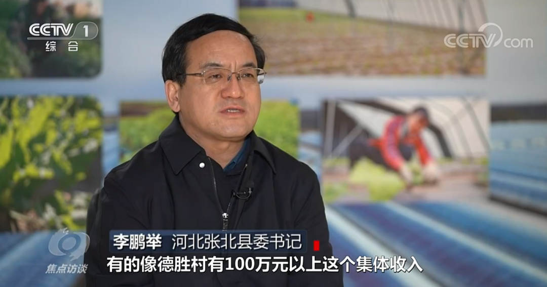 李鵬舉(河北張北縣委書(shū)記):“新能源非?少F的兩點(diǎn)。第一點(diǎn)叫就地消納,實(shí)現了就地消納,那新能源的發(fā)展將潛力無(wú)限,所以這兩年我們在推動(dòng)農村這一塊兒的就地消納,給老百姓帶來(lái)了非常大的一個(gè)增收。全縣這個(gè)366個(gè)村,所有的村莊都達到了10萬(wàn)元以上,有的像德勝村100多萬(wàn)以上這個(gè)集體收入。光伏收益是占了非常大的一塊兒,每年的綜合收益在1.5個(gè)億以上,解決了張北縣一共有64000多名脫貧群眾的基本收入問(wèn)題,資產(chǎn)性收益分配還是非常高的,所以這個(gè)產(chǎn)業(yè)我們叫它鐵桿莊稼”。