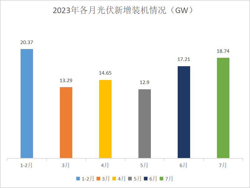 從光伏新增裝機情況來(lái)看,今年7月新增光伏18.74GW,1-7月光伏新增裝機,97.16GW。