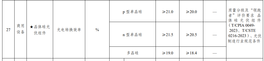 附:重點(diǎn)用能產(chǎn)品設備能效先進(jìn)水平、節能水平和準入水平(2024年版)針對光伏組件產(chǎn)品要求如下:
